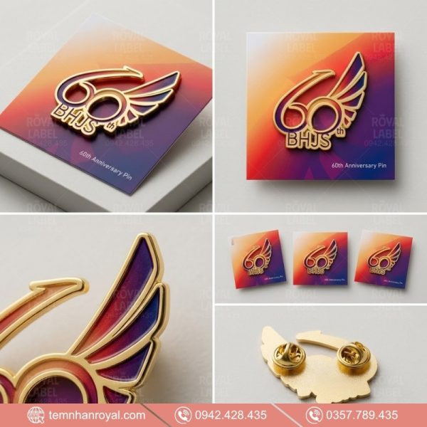 Dịch vụ in huy hiệu kim loại và in huy hiệu nhựa tại Royal. Tư vấn chọn chất liệu phù hợp, báo giá in huy hiệu cạnh tranh, cam kết bền màu theo thời gian.
