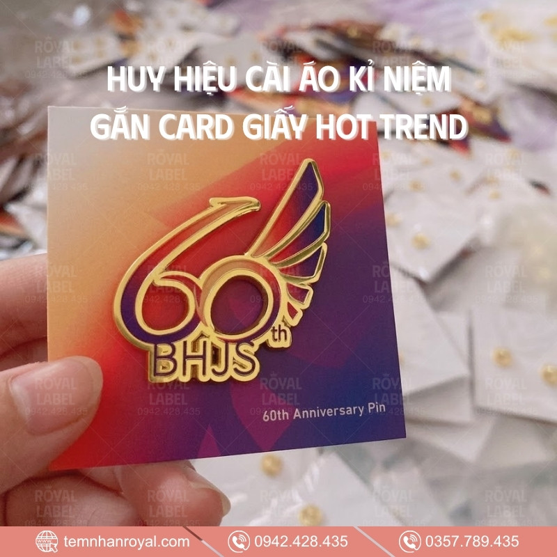 Tại Royal, quy trình in huy hiệu được thực hiện khép kín. Từ khâu tư vấn kích thước, độ dày đến khâu lựa chọn cách gắn phù hợp (ghim băng, nam châm). Dù không có sản phẩm kim loại nào là vĩnh cửu, nhưng với công nghệ mạ và phủ bảo vệ của Royal, chúng tôi cam kết độ bền màu và độ sáng bóng cực tốt theo thời gian sử dụng.Nếu bạn cần báo giá làm pin cài áo theo yêu cầu, hãy ghé thăm danh mục sản phẩm Pin cài áo để chọn cho mình chất liệu ưng ý nhất.