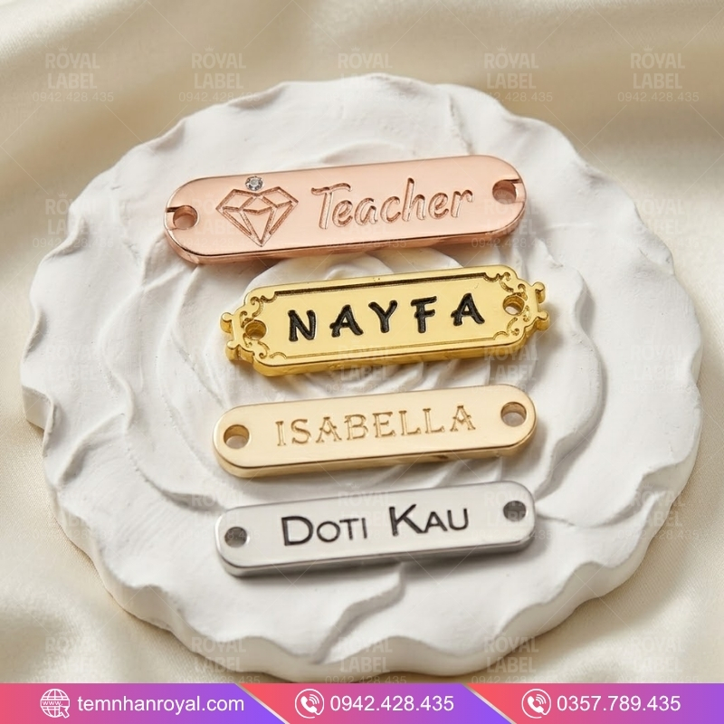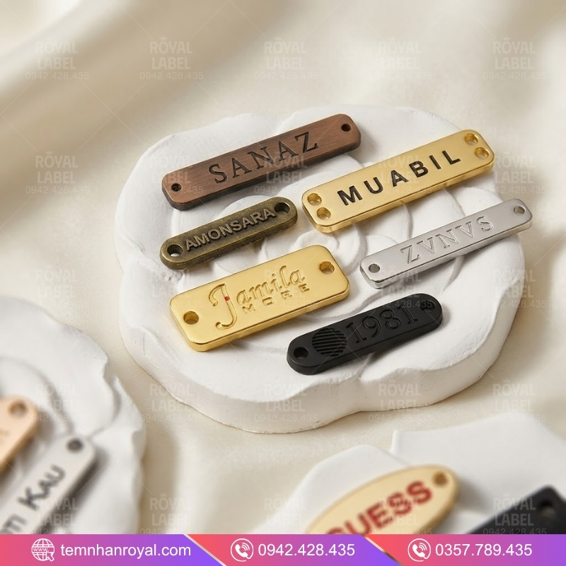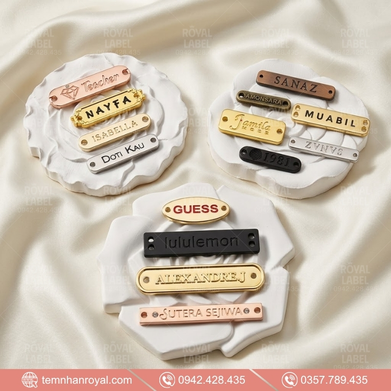 Tuy nhiên, không ít shop thời trang đang gặp phải nỗi đau: Tem kim loại kém chất lượng bị gỉ sét sau vài lần giặt, làm hỏng cả bộ đồ đắt tiền, hoặc các góc cạnh thô ráp làm xước da khách hàng. Tại Xưởng Royal, chúng tôi mang đến giải pháp nhãn mác hoàn hảo từ hợp kim kẽm đúc, giúp nâng tầm sản phẩm của bạn lên một đẳng cấp mới.