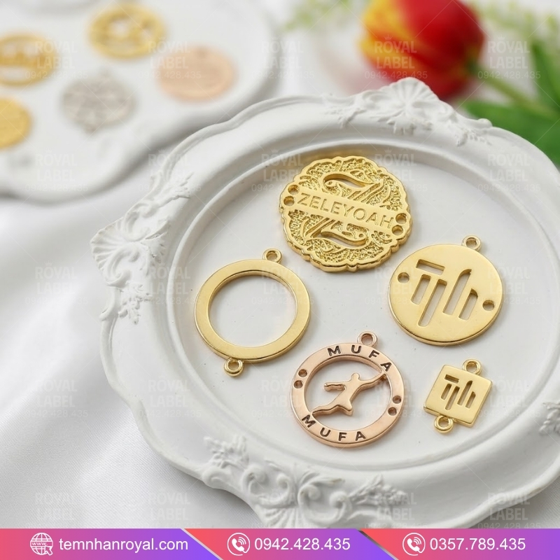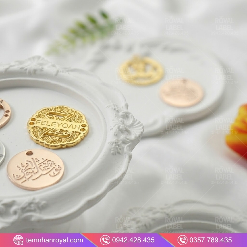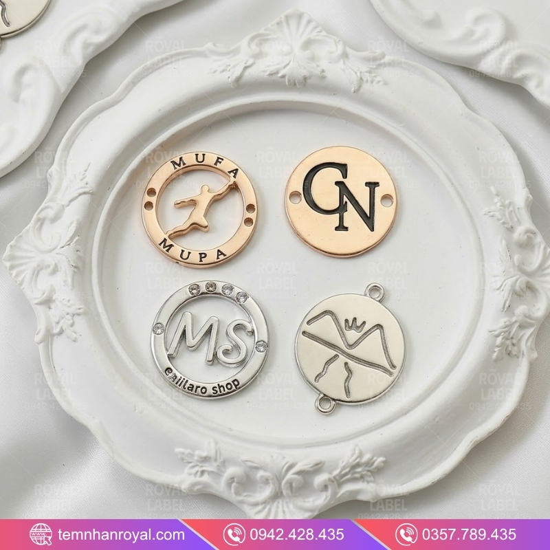 Nếu hình vuông đại diện cho sự cứng cáp, nam tính, thì tag kim loại hình tròn (hoặc Oval) lại là “tiếng nói” của sự mềm mại, tinh tế và đẳng cấp vượt thời gian. Trong thiết kế thời trang, việc sử dụng một chiếc tem kim loại tròn được đúc tỉ mỉ không chỉ giúp khách hàng nhận diện thương hiệu mà còn tạo điểm nhấn bắt mắt trên nền vải lụa, voan hay đồ len cao cấp.