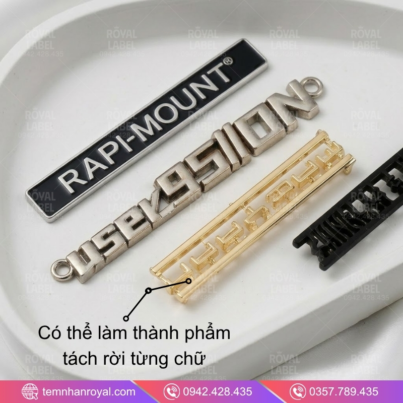 Tại Xưởng Royal, chúng tôi mang đến giải pháp tem kim loại từ hợp kim kẽm đúc nguyên khối – sự khẳng định về chất lượng và độ bền bỉ tuyệt đối cho mọi sản phẩm may mặc.