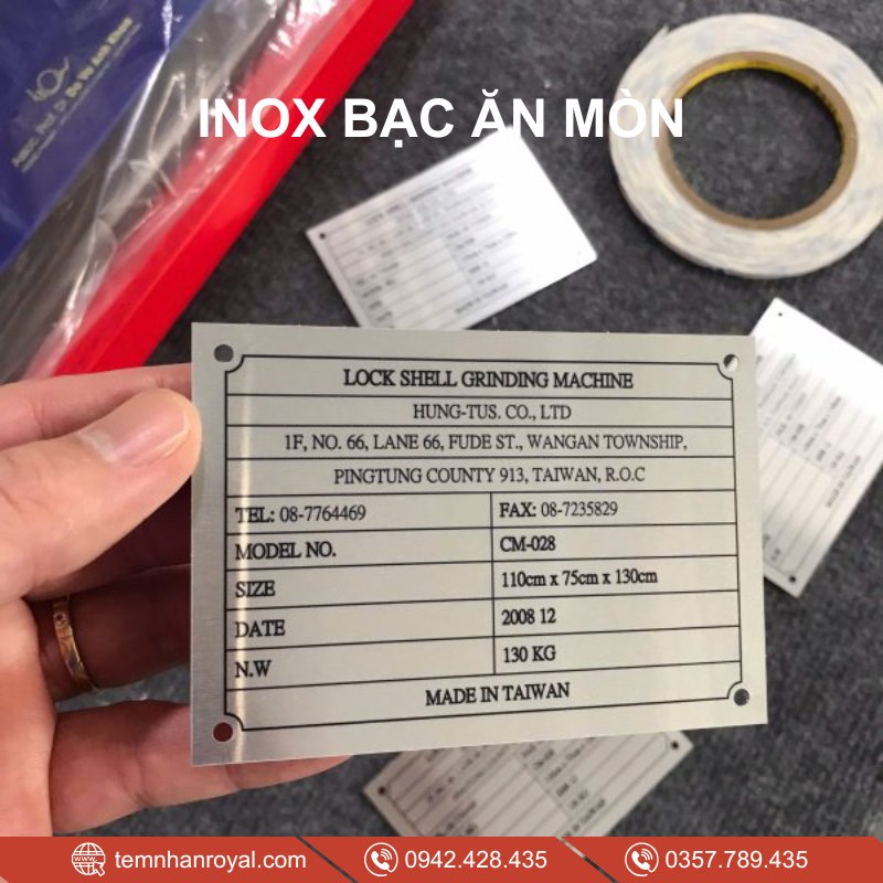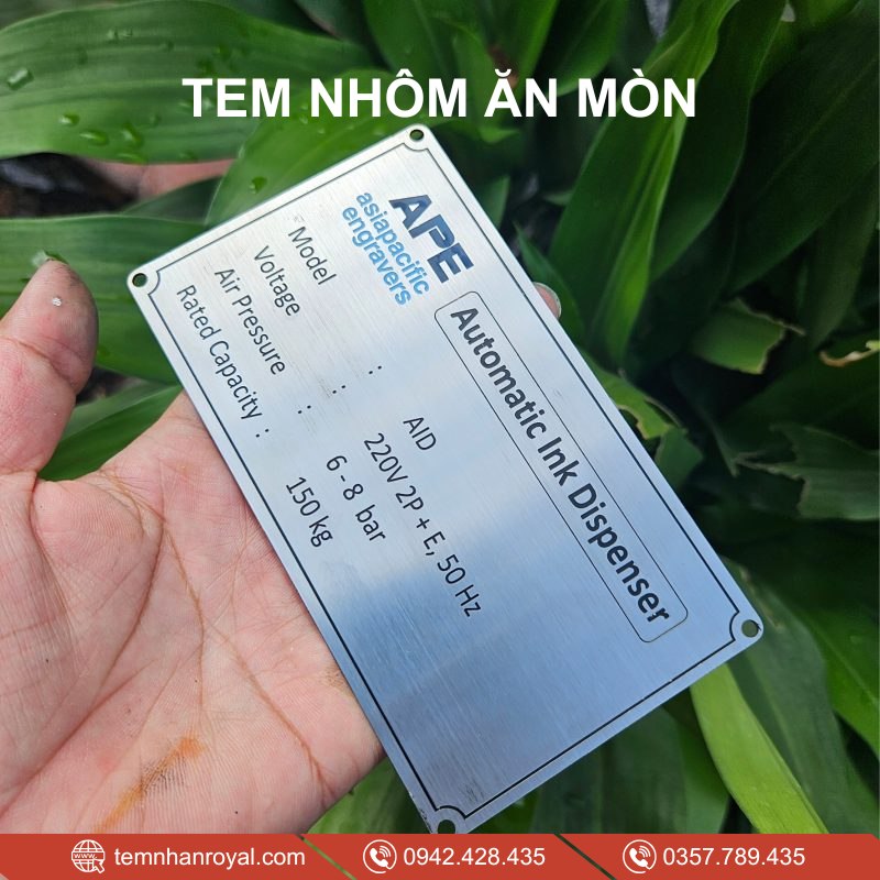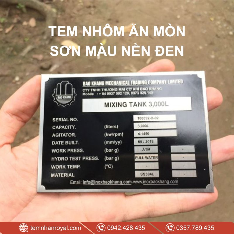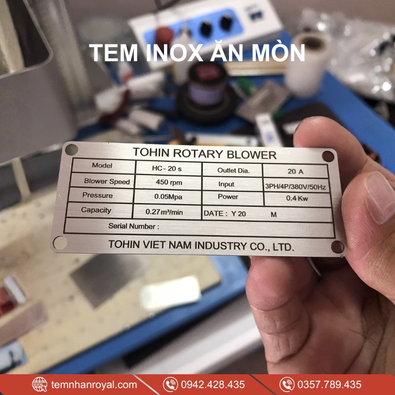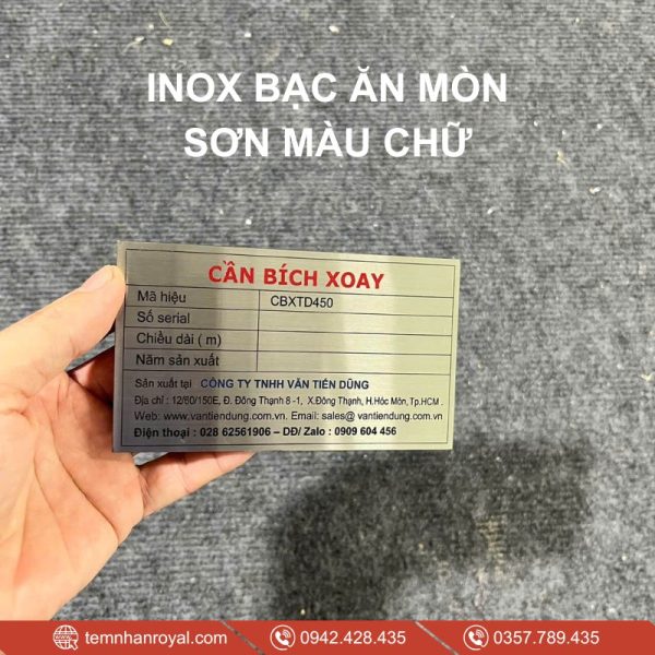 Chuyên cung cấp tem inox, tem nhôm ăn mòn sắc nét, chịu nhiệt, bền theo thời gian. Lựa chọn số 1 cho máy móc công nghiệp và nội thất sang trọng.