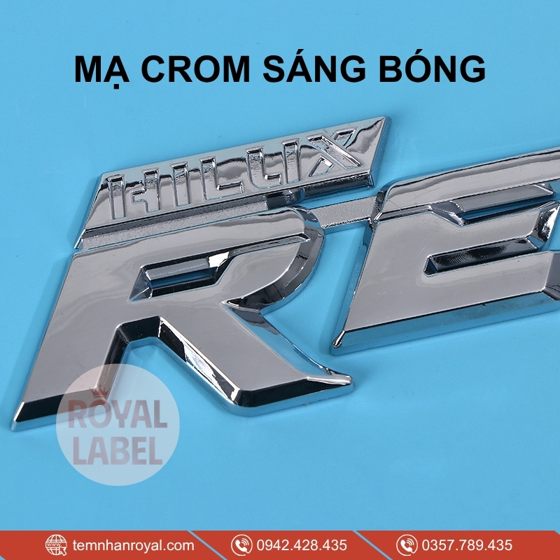 Sản phẩm được sản xuất từ nhựa Acrylonitrile Butadiene Styrene (ABS) – một loại nhựa nhiệt dẻo có độ cứng cao, khả năng chịu va đập và chịu nhiệt cực tốt. Sau quá trình đúc khuôn tạo hình 3D, tem sẽ được mạ một lớp Chrome hoặc niken để tạo độ bóng gương hoàn hảo, mang lại vẻ ngoài không khác gì kim loại nhưng với chi phí tối ưu hơn.